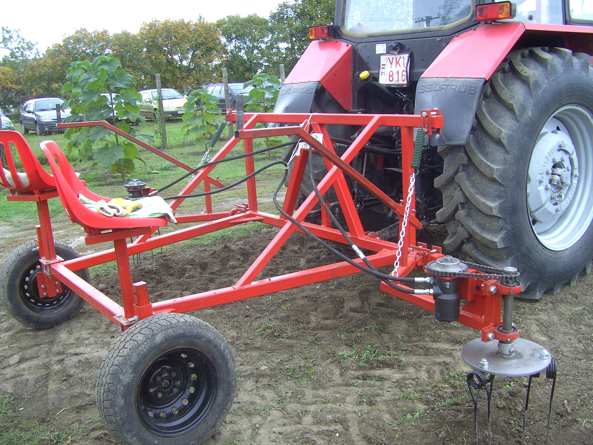 Hidromotoros meghajtású,rázóvillás külpontos gép nagyméretű csemeték ,suhángok és gyümölcsfa-oltványok gazdaságos kiemelésére.45 cm kiemelési szélesség,40 cm munkamélység! Rendkívül erős váz és vastag penge.